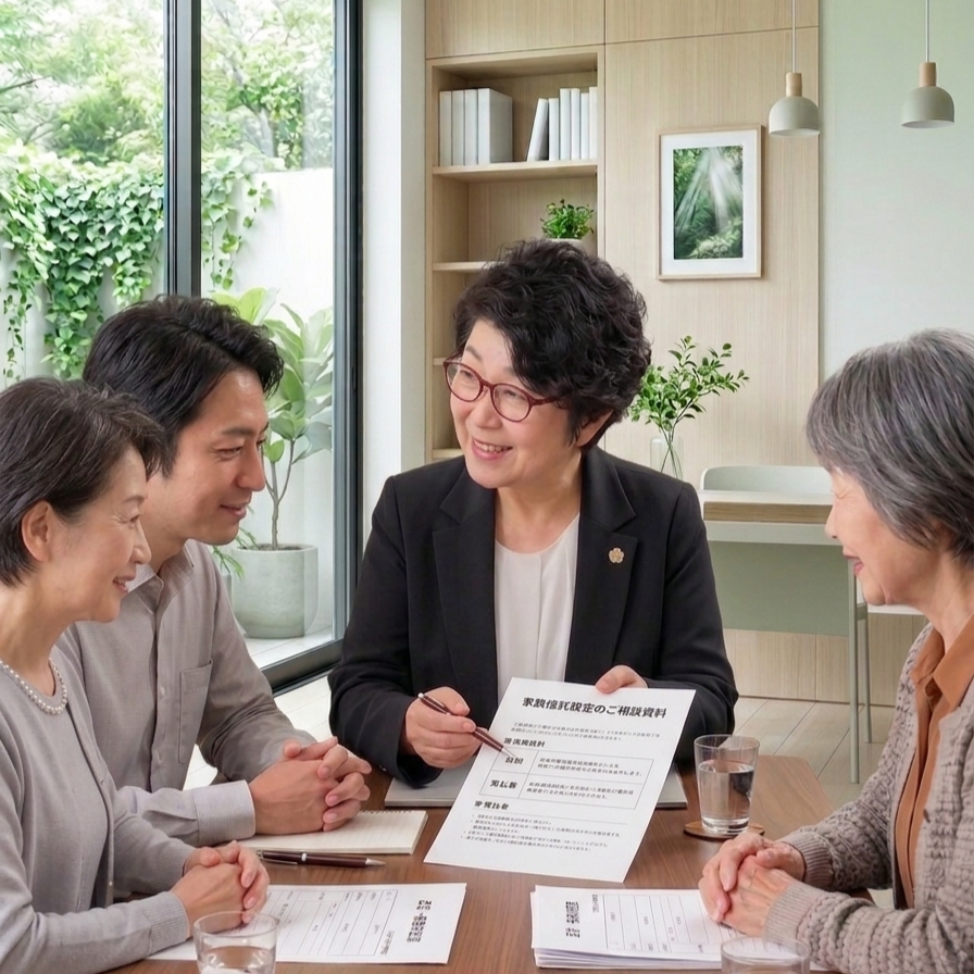 当事務所では、ご本人とご家族の希望を丁寧にうかがいながら、家族信託が合うかどうかも含めて、わかりやすくご案内します。
